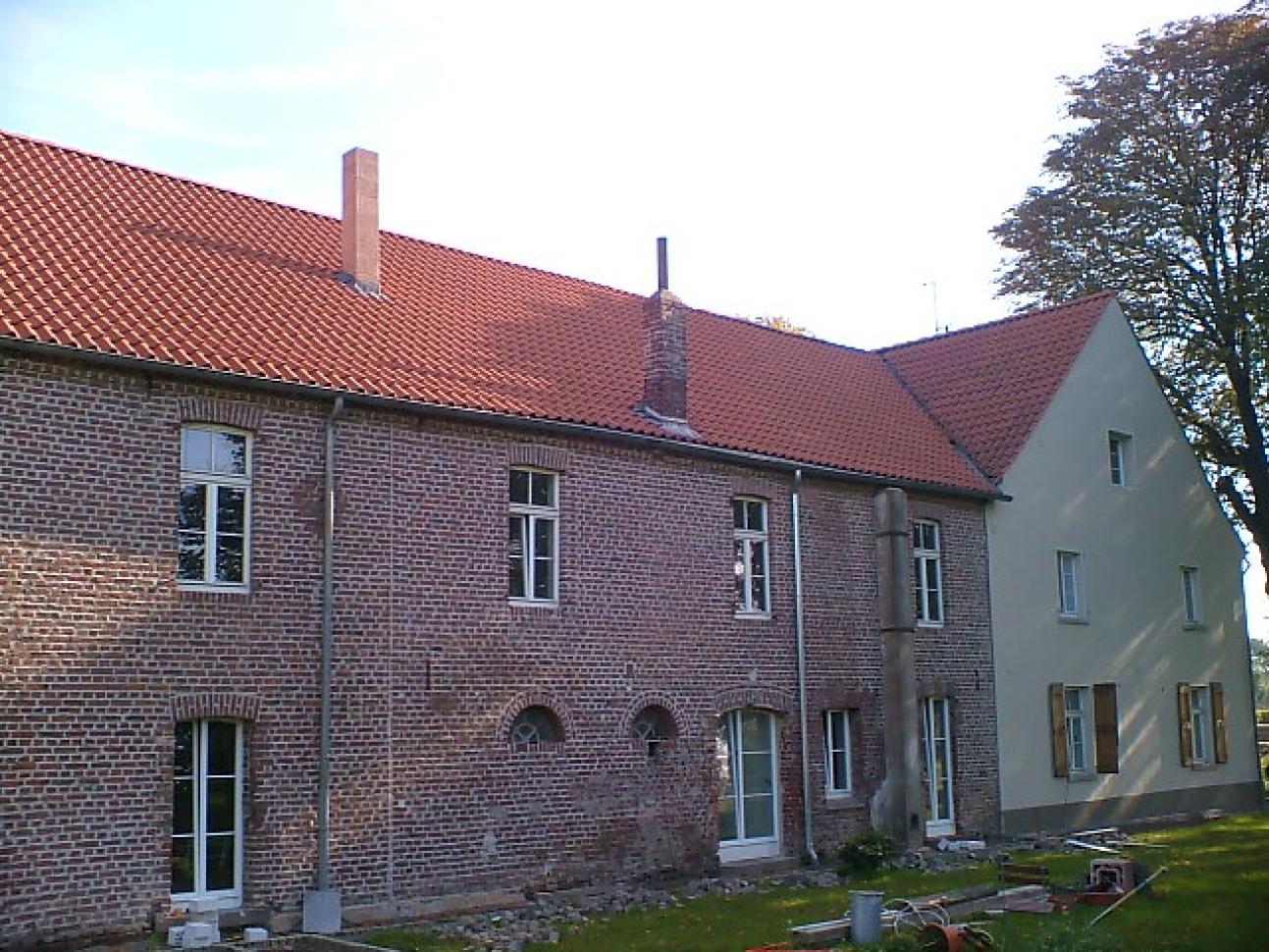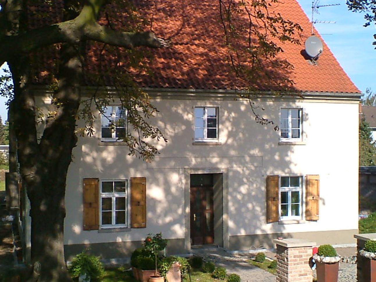 Früher wurde das Gebäude als Gastwirtschaft genutzt und war als Friemersheimer Dorfschenke unter Hans-Joachim Wiese bekannt geworden. Die neuen Holzfenster passen sich unauffällig und stimmig in die liebevoll sanierte Anlage ein, schließlich wurde die Aufteilung, Art und Ausführung der Zierprofile in enger Abstimmung mit der regionalen Denkmalschutzbehörde umgesetzt.