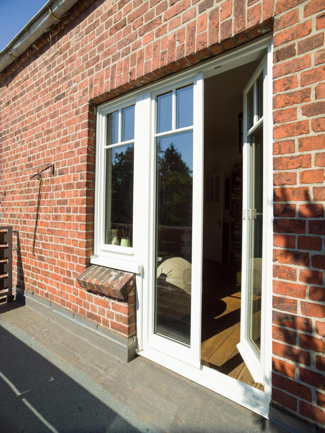 In der Hamburger Siedlung Siemershöhe, deren historischer Gebäudebestand größtenteils unter Ensembleschutz steht, wurden in einem Klinkerwohnhaus denkmalgerechte Fensterlösungen von PaX umgesetzt. Eingebaut wurden PaXcontur Holzfenster mit 68 mm Bautiefe aus Lärche, ausgeführt in RAL 9016 Verkehrsweiß. Die traditionellen Sprossen unterstreichen den historischen Charakter, während moderne Anforderungen an Sicherheit und Komfort berücksichtigt wurden: einbruchhemmende Beschlagtechnik, spezielle Sicherheitsverglasungen sowie Schallschutz der Klasse 4 – ein wesentlicher Aspekt wegen der Nähe zum Flughafen. Eine optisch überzeugende Lösung stellte zudem der Einsatz des „doppelten Stulps“ dar, der die historische Anmutung bewahrt. Beratung, Aufmaß und die fachgerechte Montage erfolgten durch den PaX-Partner HolzArt Tischlerei GmbH & Co. KG aus der Region.