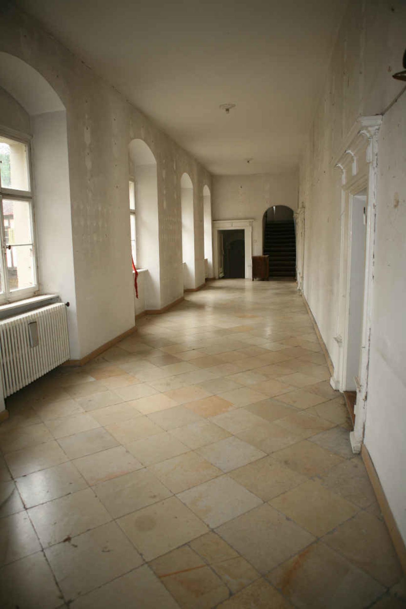 Auch die beeindruckende Fassade des Schlosses wurde nach der denkmalgerechten Maxime „so viel wie nötig so wenig wie möglich“ behutsam saniert. Die Fenster stammen, wie so oft bei solchen erwürdigen Gebäuden, aus vielen verschiedenen Entstehungszeiten. Fenster, die partout nicht in Gebäude passten (Nachkriegssünden) oder einfach nicht mehr sanierungsfähig waren, wurden denkmalgerecht erneuert. Zierprofile, Binnengliederung und Querschnitte (in der Regel 58mm) wurden an historische Fenster der gleichen Sichtachsen angeglichen. Eine besondere Hausausforderung waren die Innenvorfenster in den Fluren. Hier wurde ein ungewöhnlicher aber letztlich erfolgreicher Weg gewählt. Die neuen Innenvorfenster wurden nicht wie üblich in die unmittelbar vorhandene Fensterlaibung gesetzt sondern großzügig (mit Elementhöhen bis zu 330cm!) vor die durch massive Schlossmauern sehr tiefe Gesamtlaibung eingebaut. Diese unkonventionelle Lösung hat den Charme, dass nun die bauzeitliche Einbausituation vollkommen ungestört bleibt und sich das Ergebnis als funktionaler Schaukasten präsentiert.