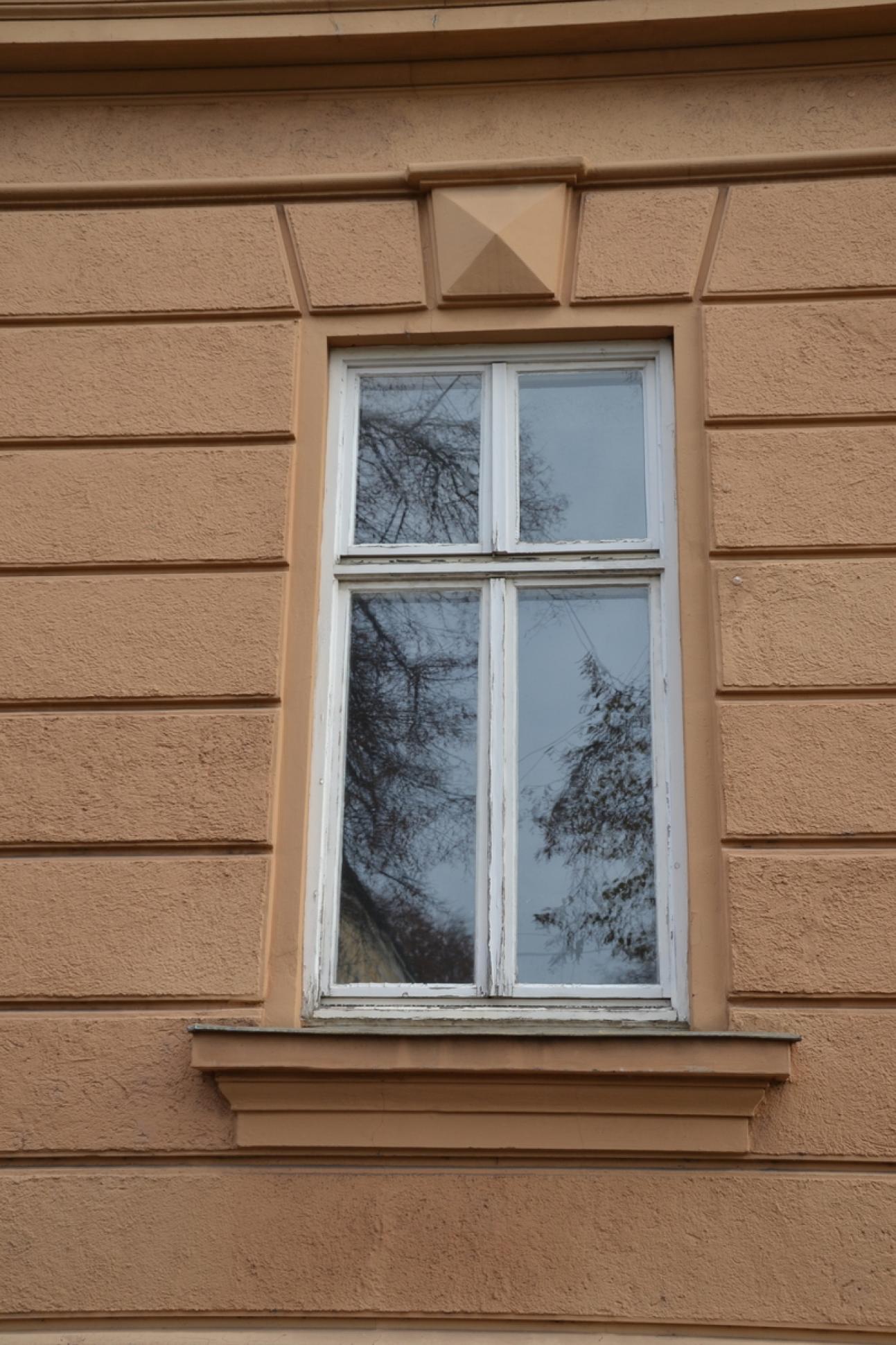 Die zu diesem Zeitpunkt noch verbauten Verbundfenster stammten aus der zweiten Hälfte des 20. Jahrhunderts und hatten keinerlei denkmalpflegerischen Wert. Anhand historischer Fotogafien konnte die ursprüngliche Teilung und Sprossierung nachvollzogen werden, ebenso wurden Farbuntersuchungen an der Fassade durchgeführt.
