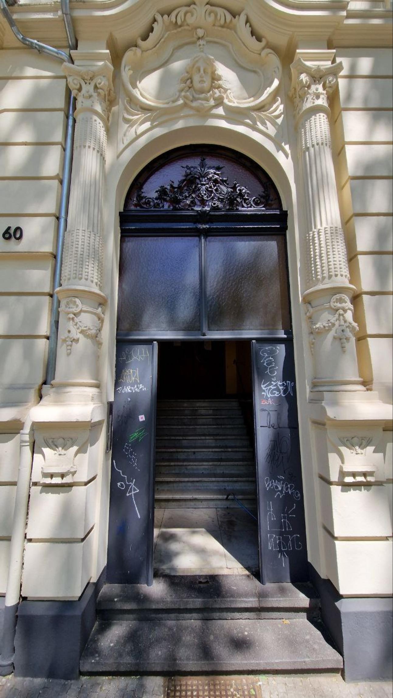 Holzfenster in Eukalyptus-Holz mit RC2-Sicherheit, Schallschutzklasse 3 und edler Farbgestaltung für eine Stadtvilla in Frankfurt.
