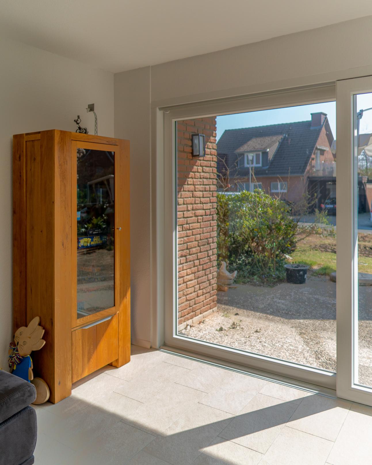 Für ein Wohnhaus in Münster wurde eine hochwertige Hebeschiebetür aus dem Kunststoffprofil PaXabsolut Neo installiert. Diese Tür besticht durch ihr schlankes Design und ermöglicht dank großer Glasflächen einen großzügigen Zufluss von natürlichem Tageslicht, was den Wohnraum hell und freundlich gestaltet. Die Hebeschiebetür lässt sich außergewöhnlich leicht und komfortabel öffnen und schließen, was den Alltag erheblich erleichtert.