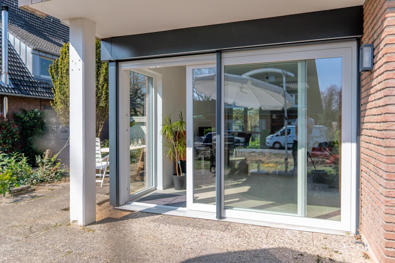 Zur optimalen Beschattung wurde eine vorgesetzte Beschattungsanlage integriert, die flexibel für angenehmes Raumklima sorgt und den Wohnkomfort weiter steigert. Die Beratung und fachmännische Montage der Hebeschiebetür erfolgte durch den PaXpartner Betrieb H. Höflich GmbH aus Münster.