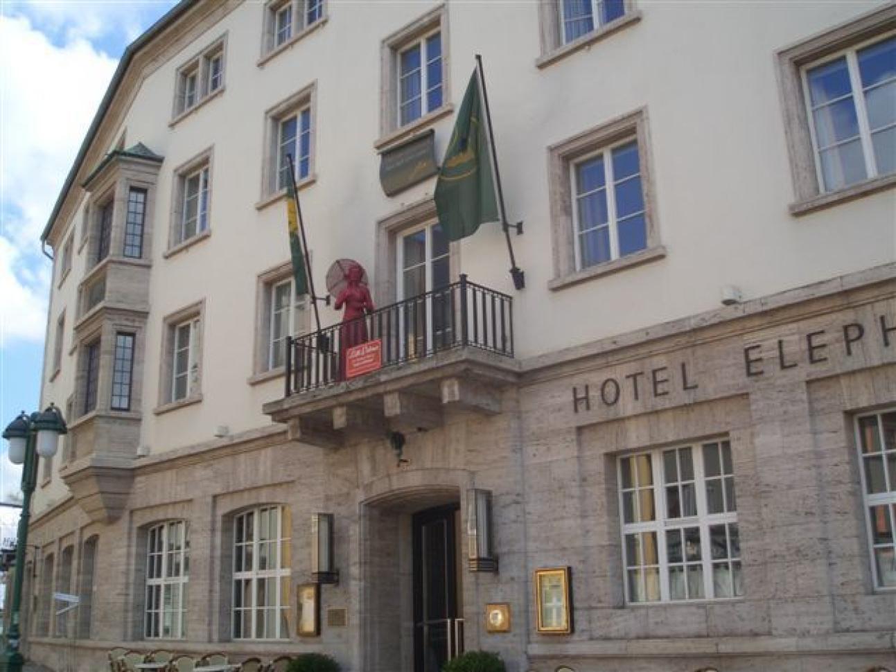 Erbaut 1547, wurde des Haus etwa 150 Jahre später, genauer am 17.02.1696 erstmals als Gastwirtschaft und Hotel "Zum Elephant" in Weimar geführt. Im Laufe der weiteren Jahrhunderte war es auch als Weimarer Poststation bekannt, zählte aber unter seinem Namen "Elephant" zu den meistbesuchten Lokalitäten der Stadt. Die Gästeliste lässt sich sehen: Es ist überliefert, daß Goethe dort seinen 80.Geburtstag feierte, Richard Wagner und Clara Schumann, Felix Mendelssohn-Bartholdy, Tolstoi, Liszt, Rubinstein, Christian Andersen und viele weitere Persönlichkeiten dort zugegen waren. 1893 wurde das Haus von Paul Leutert modernisiert. Mit 50 neuen Betten, "kaltem und warmem Fließwasser" und ausgezeichneter Küche wurde der „Elephant“ zum besten Hotel in Weimar. Im zweiten Weltkrieg nutze Adolf Hitler das Hotel zeitweilig als Parteizentrale. Hitler ließ das ursprüngliche Hotel abreißen und durch Architekt Hermann Giesler den Neubau erreichten. 1955 - nachdem das russische Militär das Gebäude als Internat für Russischlehrer genutzt hatte - , war es Thomas Mann zu verdanken, dass er im Zuge der Verleihung des Schillerpreises die ursprüngliche Bestimmung des Gebäudes als Hotel wieder zum Leben erweckte: Er ist der erste, der sich in die Gästeliste des neu eröffneten Hotel eingetragen hat. Die Gästeliste ist seit dem beständig gewachsen: klingende Namen wie Gerhard Schröder, Wladimir Putin, Anna-Sophie Mutter, Sir Peter Ustinov, Jeniffer Lopez, Udo Lindenberg, Armin Mueller-Stahl und viele weitere sind dort zu finden.