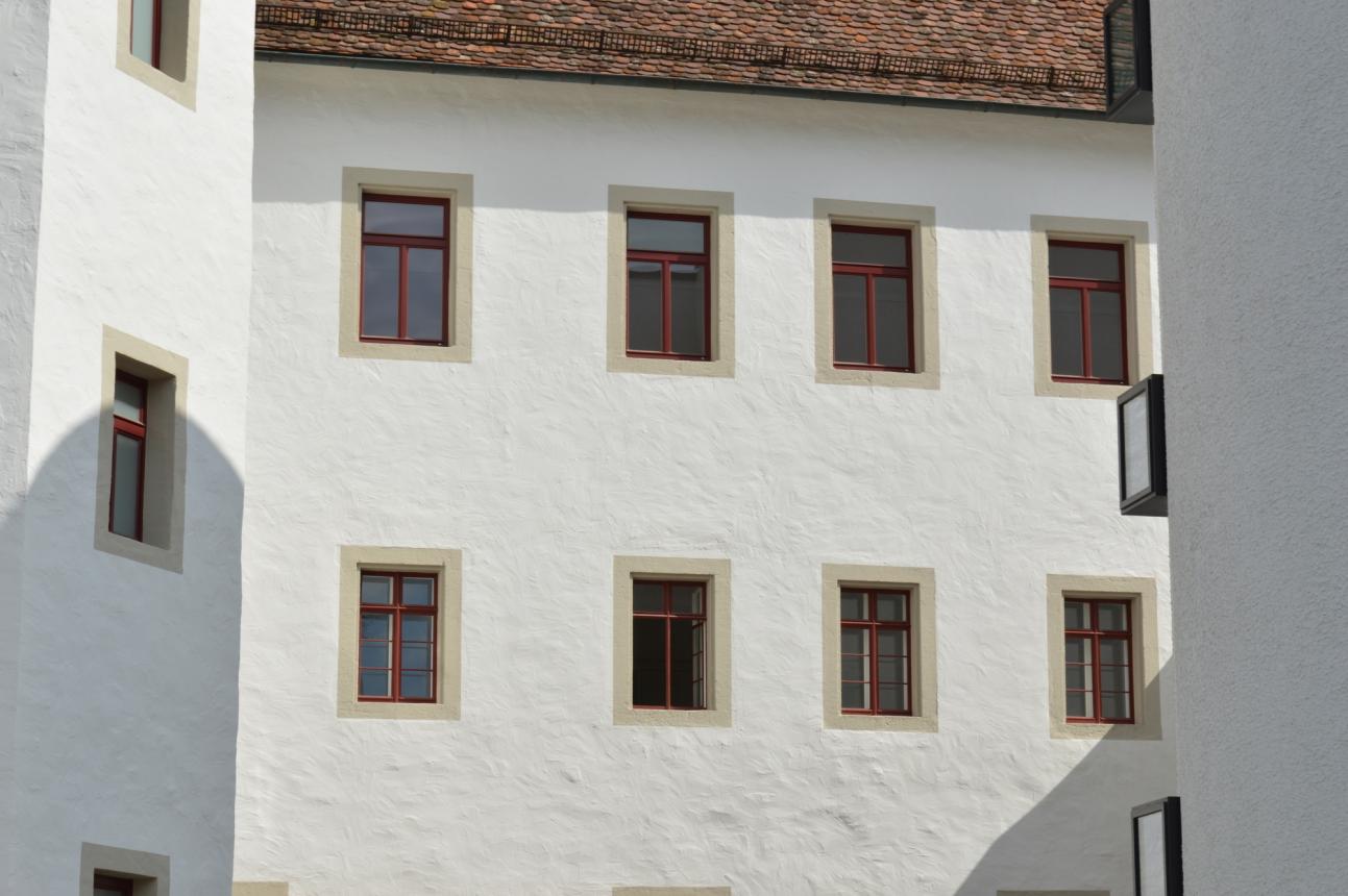 PaX vobiscum! Das Bischöfliche Palais wurde 1657/58 durch die Freiherren von Hohenberg erbaut. Die Fassaden des barocken Gebäudes mit seinen markanten Staffel- bzw. Treppengiebeln sind streng gegliedert und für die Barockzeit eher schmucklos. Das Palais beeindruckt in erster Linie mit seiner schieren Größe und den strengen Fensterreihungen, die jedoch durch eine abwechselnde Dreiecks- und Segmentgiebelverdachung für Plastizität sorgen. Das Haus wurde bereits drei Jahre nach seiner Fertigstellung vom Jesuitenorden erworben und war bis zur Aufhebung des Ordens 1773 ein Jesuitenkolleg mit Gymnasium. Ab dem späten 18. Jahrhundert wurde das Gebäude österreichischer und nach 1806 württembergischer Behördensitz. Am 16. August 1821 wird das Palaisgebäude Sitz der Diözese Rottenburg, die Errichtung erfolgte von Papst Pius VII. mit der päpstlichen Urkunde „Provida Solersque“. Solche Neuumschreibungen waren die Ergebnisse des Wiener Kongresses von 1815, auf dem die schwebenden kirchlichen Angelegenheiten nicht eindeutig geregelt worden waren. In diesem Zusammenhang war es dem Papst wichtig, die kirchlichen Grenzen an die territorialen Grenzen anzugleichen. Seit 200 Jahren ist das Palais somit der Verwaltungssitz der Diözese. Wegen unzureichendem Brandschutz, gravierender Bauschäden sowie nicht mehr zeitgemäßen Installationen konnten das Palais nicht ohne umfangreiche Maßnahmen weitergenutzt werden. Die denkmalgerechte Sanierung des historischen Anwesens und die gelungene Einbindung spektakulärer moderner Architektur wurde von einem renommierten Stuttgarter Architekturbüro geplant und durchgeführt. Die neuen PaX-Fenster wurden mit schmalen 58mm Profilen ausgeführt. Die Teilung und Zierprofilierung wurde anhand einiger restaurierter Bestandsfenster abgeleitet. Nicht nur die Sanierung und die zeitgenössischen Erweiterungsgebäude erfreuen die Rottenburger: Das gute Zusammenwirken von Priestern, Ordensleuten und „Laien“ gehört bis heute zu den charakteristischen Merkmalen der Diözese.