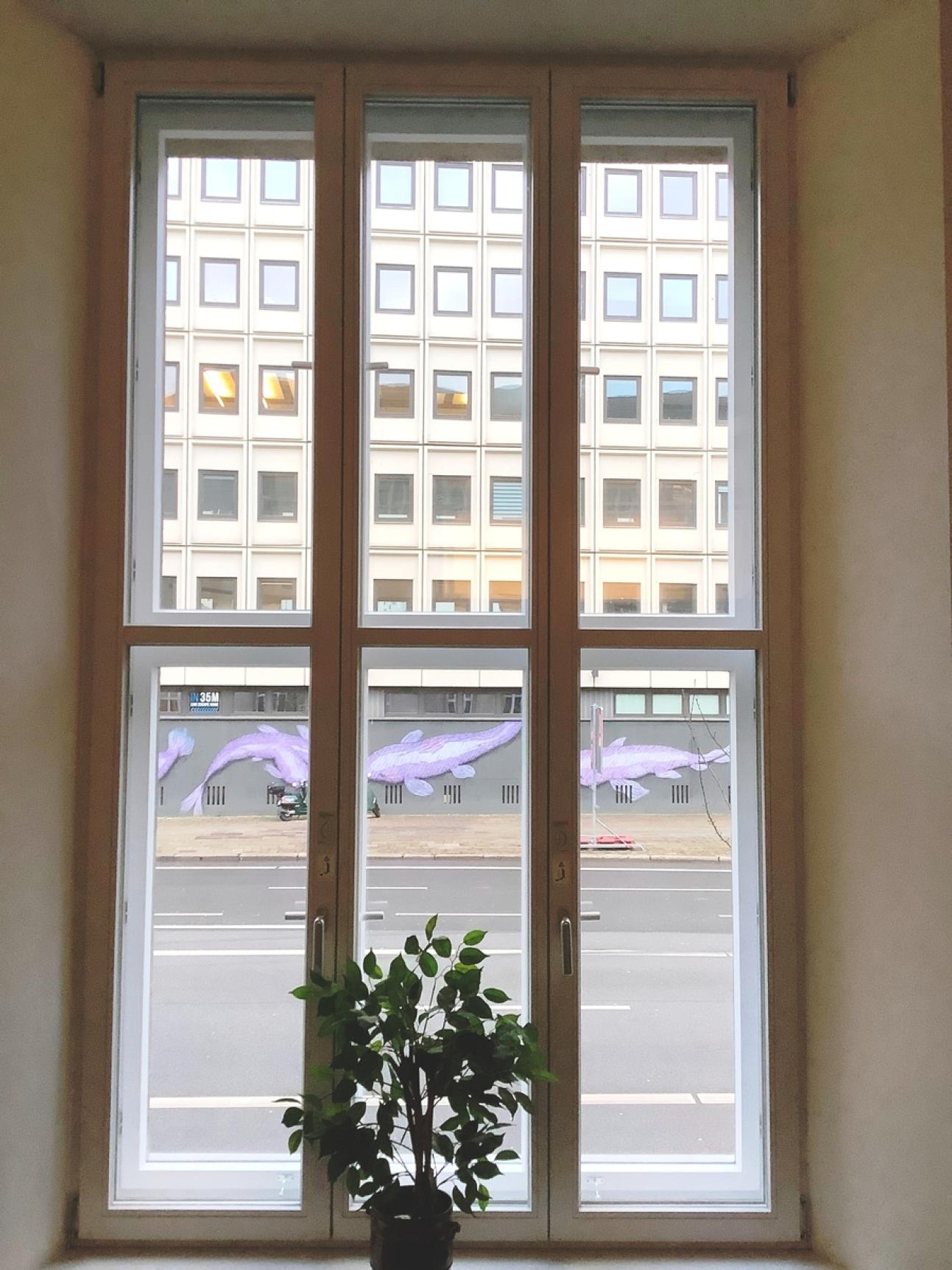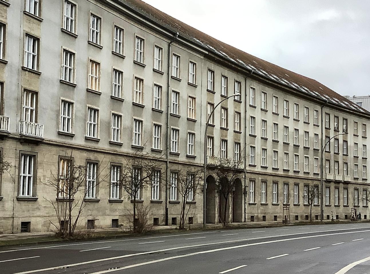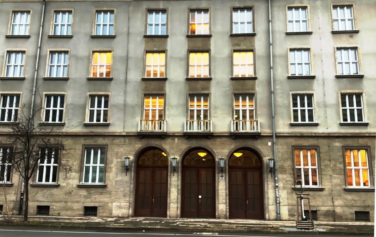 Die klare, sachliche Architektur des monumentalen, auf seine Weise Respekt einflößenden Gebäudes repäsentiert die angestrebte Bauweise der Zeit des Nationalsozialismus. Das stattliche Gebäude wurde von 1935 bis 1939 als Bürohaus für Dienststellen der Stadtverwaltung erbaut. Nur wenige Jahre nach seiner Errichtung erlitt das Gebäude im zweiten Weltkrieg sehr schwere Schäden, wurde aber um 1950 unverändert wieder aufgebaut. Die Fassade erhält Plasitizität durch die werksteingerahmten Fensteröffnungen und Brüstungsfelder, insgesamt besitzt das im leichtem Schwung zur Straße verlaufende Gebäude eine gewisse Eleganz. Die neuen Kastenfenster und deren strenge Zierprofilierung und Vereistung orientieren sich fast millimetergenau an den historischen Vorbildern. Aufgrund der vielbefahrenen Strasse wurde die Schallschutzklasse 4 gefordert. Dies wurde unter anderem durch eine innere Isolierverglasung erreicht. Viele der teilweise bis zu 3m hohen Elemente wurden auf der inneren Ebene mit in der vollen Höhe durchgehenden Flügeln konstruiert - wobei die Griffoliven bedienungsfreundlich sehr tief sitzen und sich dennoch mittels eines Spezialbeschlags sehr einfach öffnen und schließen lassen.