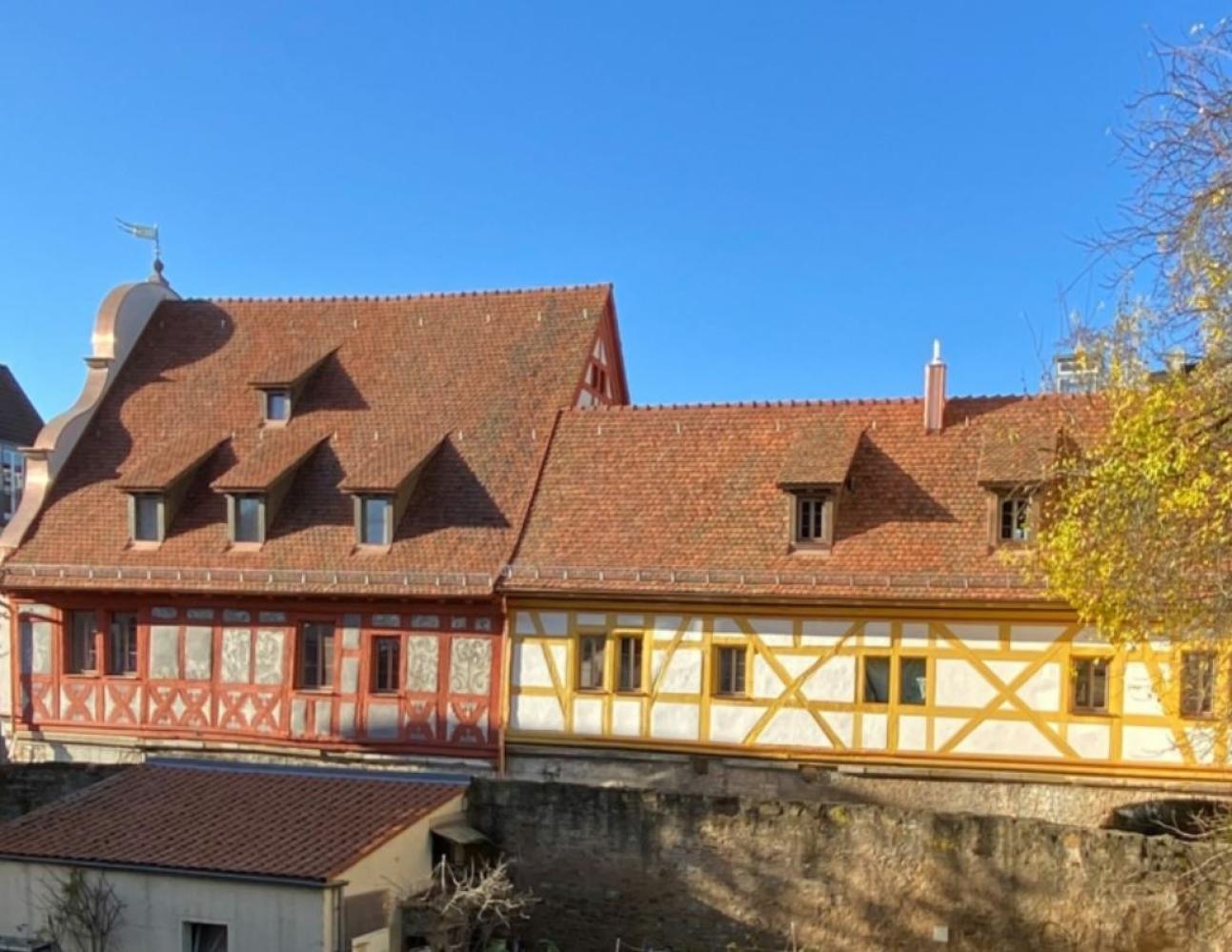Das einst stolze Bürgerhaus, eines der ältesten Gebäude Schweinfurts, wurde zum Ende des zweiten Weltkrieges erheblich zerstört. Der markante, geschweifte Giebel (die Prunkfassade) fiel den Kriegseinwirkungen zum Opfer. Um Wohnraum zu gewährleisten wurde das Haus nach dem Krieg nur notdürftig saniert, es gab sogar Abrisspläne. Die Schäden waren bis 2021 erkennbar, das Haus wirkte an markanter Stelle eher wie ein Schandfleck. Der Eigentümer des Gebäudes, die Stadt Schweinfurt, entschied sich 2017 das Gebäude zu veräußern und zeigte dem zukünftigen Besitzer bereits in den Verkaufsunterlagen, welches Juwel hier schlummert. Das neue Besitzerpaar hat beruflich mit alter und wertvoller Substanz zu tun - schließlich führen Sie die über die Grenzen Bayerns hinaus bekannte Firma "Löwen-Restaurierung" (https://loewen-restaurierung.de.) So konnten noch erhaltene, mittelalterliche Malereien wieder sichtbar gemacht werden. Das renommierte Architekturbüro Friedrich Staib, das sich sehr erfolgreich der vorbildlichen Sanierung wertvoller Bausubstanz verschrieben hat, übernahm die Planung und Betreuung der Ausführung. Die PaXpur58-Fenster haben mit stimmigen, filigranen Ansichtsbreiten und Details wie geschlossenen Brüstungsfugen, authentischer SCHOTT-Restover-Verglasung und Karnbiesbleisprossen Anteil am überzeugenden Erscheinungsbild. Das Ergebnis überzeugt auf voller Linie, das Gebäude ist wieder ein Anziehungspunkt und stiftet Identität. Der renommierte Verein "StadtBild Deutschland e.V." zeichnete das Haus zum "Gebäude des Jahres 2022" aus. Weitere Informationen zu diesem ungewöhnlich interessanten Projekt unter https://verein-stadtbild-deutschland.org und unter https://www.architektur-staib.de Wir danken dem Architekturbüro Staib für die Bereitstellung der in diesem Artikel gezeigten Bilder.