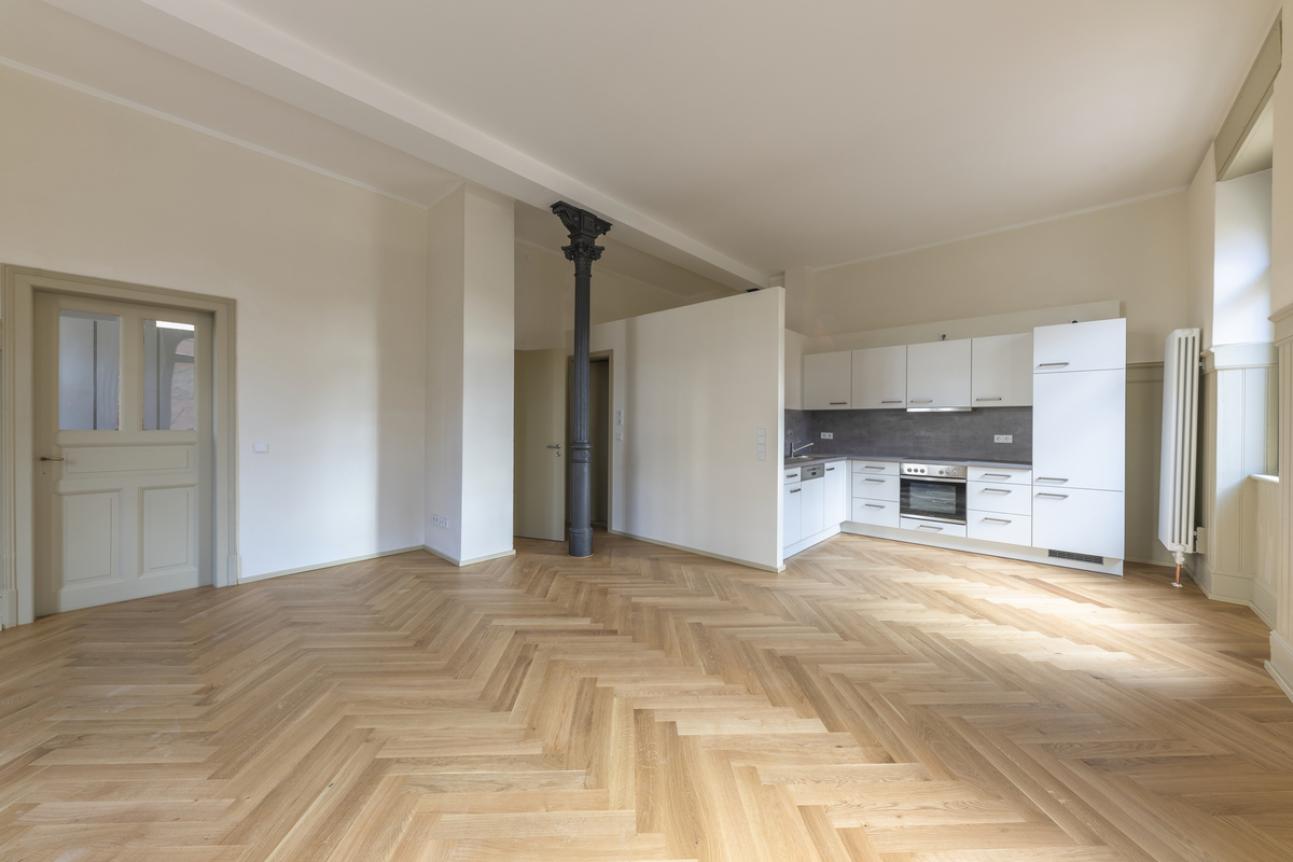 Ziel der Sanierung war dreierlei: Neben der Instandsetzung des Gebäudes mit Dachneueindeckung und Erneuerung von Verblechungen, sollte nicht nur die Schaffung von hochwertigem Wohnraum in den Bestandswohnungen, dem Ausbau des Dachgeschosses zu zwei Wohnungen mit dem besonderem Highlight einer geräumigen Dachterrasse inklusive einladender Treppe zum Verweilen im Mittelpunkt stehen, sondern auch eine Aufwertung der Fassade erfolgen.