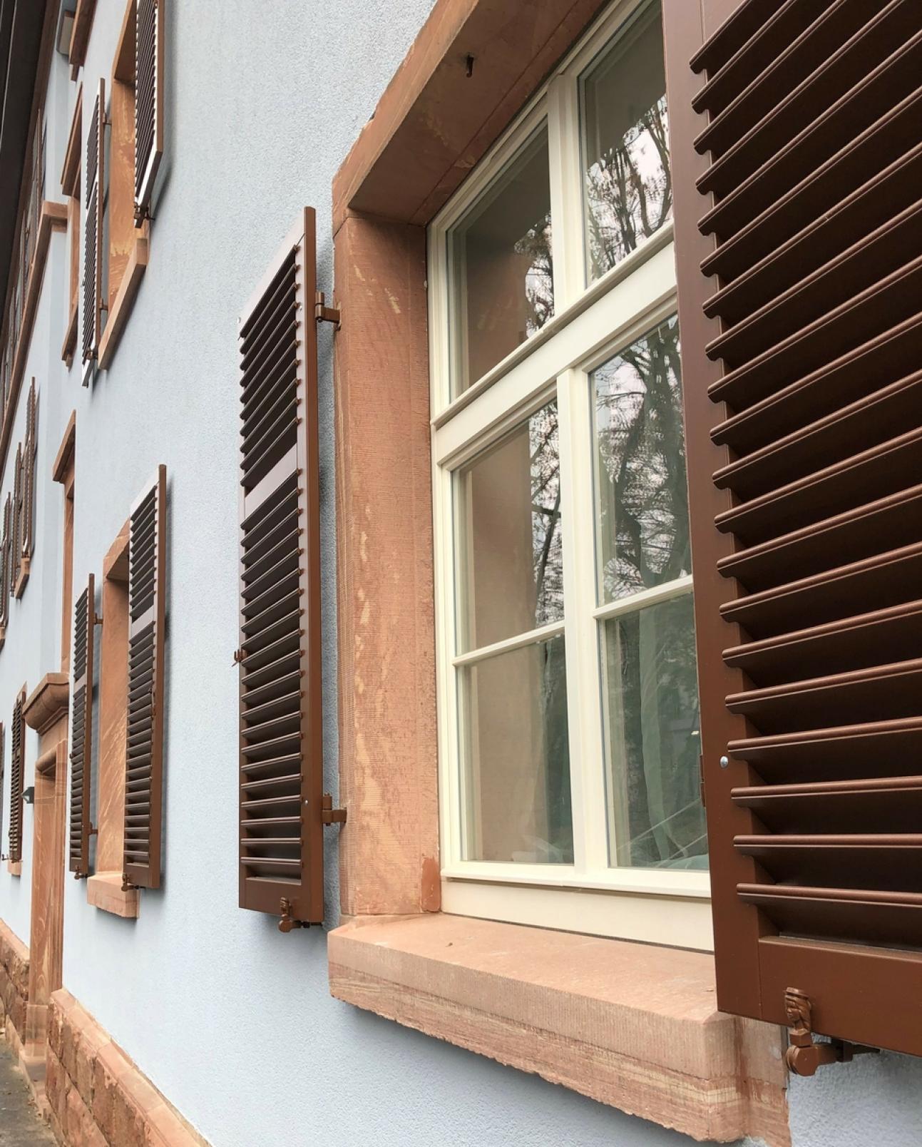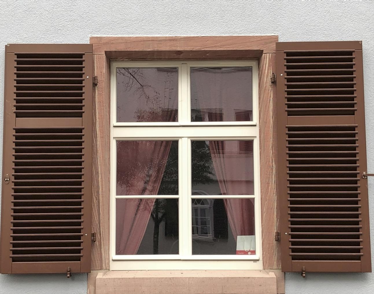 Saniertes historisches Mehrfamilienhaus - die Sünden der Vergangenheit wurden bei der Gesamtsanierung umsichtig beseitigt und unsprossierte Fenster mit Regenschutzschiene gegen Sprossenfenster mit konstruktivem Wetterschenkel getauscht. Die neuen Holzfenster haben Feuchtigkeitsregulierte Fensterfalzlüfter für ein optimales Wohnraumklima. Die historische Haustür wurde aufgearbeitet, die Blendläden erneuert. Heute strahlt das Haus wieder in historischem Glanz.