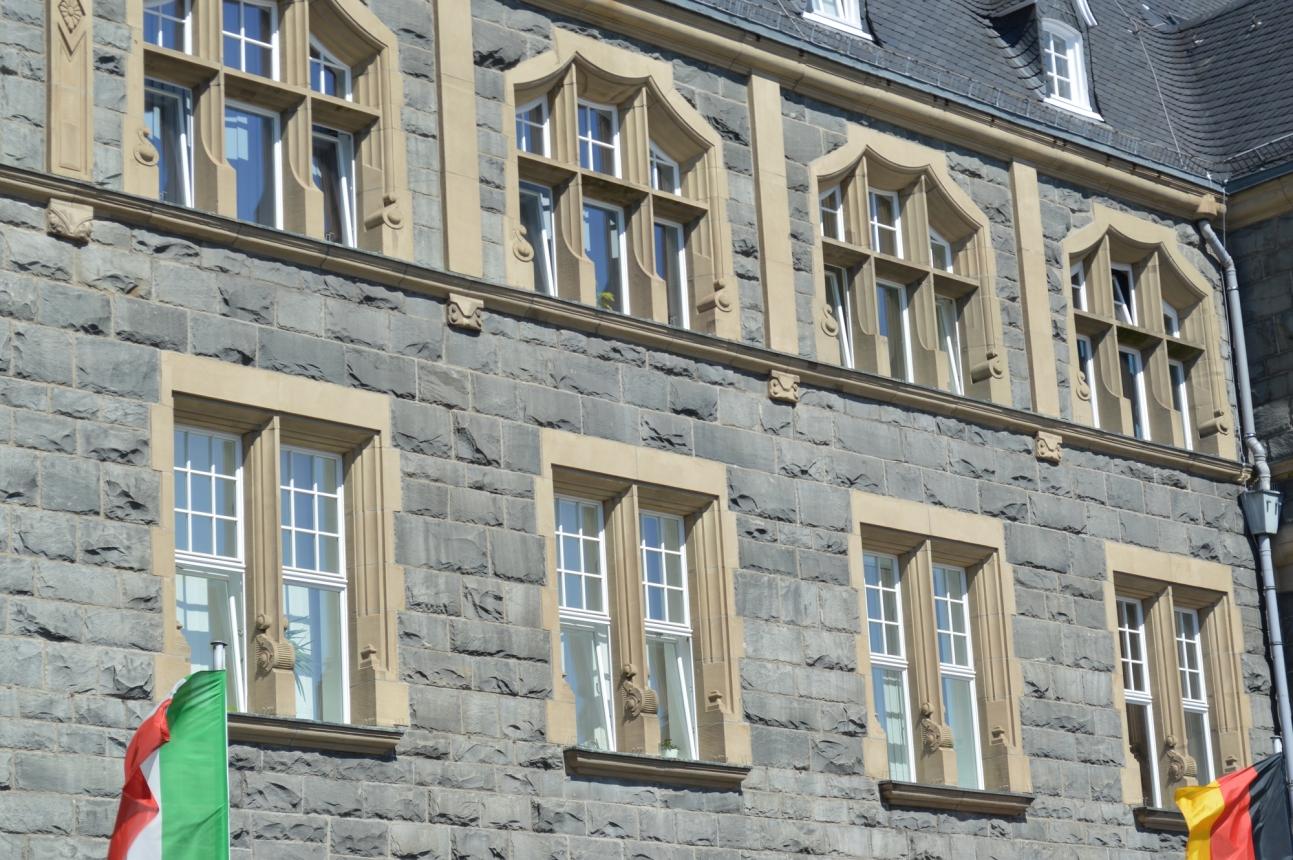 Das auf Denkmalpflege und Altbauerhaltung spezialisierte und mit dem Bundespreis für Handwerk in der Denkmalpflege ausgezeichnete Architekturbüro Welke aus Remscheid stellte schnell fest, dass ein Großteil der stark angegriffenen Holzfenster nicht aus der Erbauungszeit stammten: Im Krieg wurde das Rathaus stark zerstört und beim Wiederaufbau in den 1950er Jahren wurden andere Materialien eingesetzt. Die Verwendung von Floatglas statt Ziehglas und die schlechtere Holzqualität ließen eine einfache Unterscheidung von Original- und Nachbaufenstern zu. Die erhaltenen Fenster waren zum größten Teil als Kastenfensterkonstruktion ausgeführt, was auch heute noch technisch überzeugend ist. Sie befanden sich in einem akzeptablen Zustand und konnten aufgearbeitet werden. Bei den Nachkriegsfenstern sah die Bilanz deutlich anders aus: Einfachverglaste Weichholzfenster in mäßigem Erhaltungszustand machten eine Sanierung mit energetischer Ertüchtigung schlichtweg unwirtschaftlich. So stimmte die zuständige Denkmalschutzbehörde – mit Amtssitz im Gebäude - der Erneuerung der Nachkriegsfenster zu. Dies jedoch unter zwei Auflagen: Die neuen Fenster müssen aus widerstandsfähigem Hartholz sein und in den Ansichtsbreiten sowie konstruktiven Details den bauzeitlichen Fenstern angeglichen werden. Um die neuen Fensterprofile beurteilen zu können, wurden maßstabsgerechte Schnittzeichnung angefertigt, die auch die Rekonstruktion der historischen Zierprofile erkennen ließen und dem Denkmalamt als Genehmigungsgrundlage diente. Das Ergebnis der Fenstersanierung, die in mehreren Bauabschnitten durchgeführt wurde, erfreut alle Beteiligte: Jetzt überzeugen die Fenster und das historischen Rathaus erstrahlt wieder in ursprünglichem Glanz.