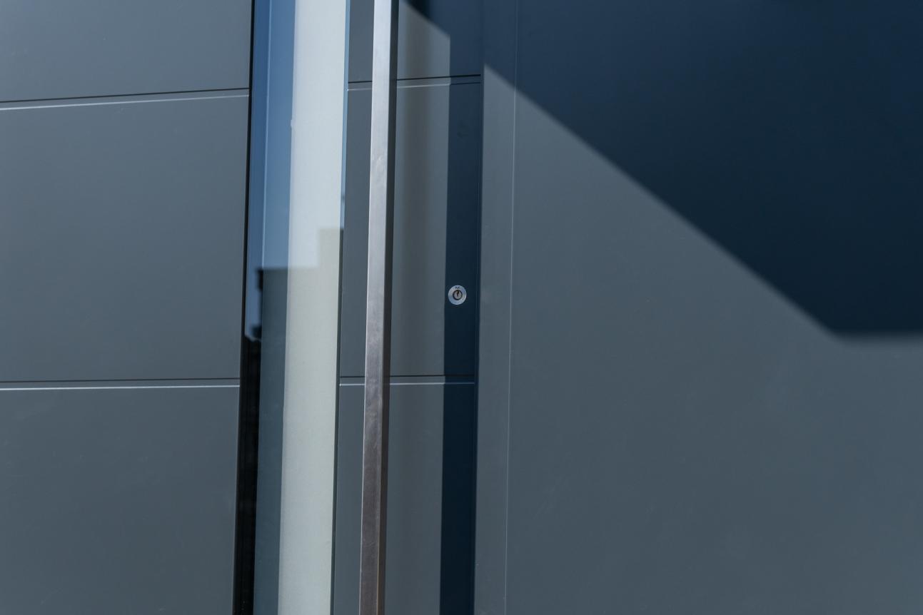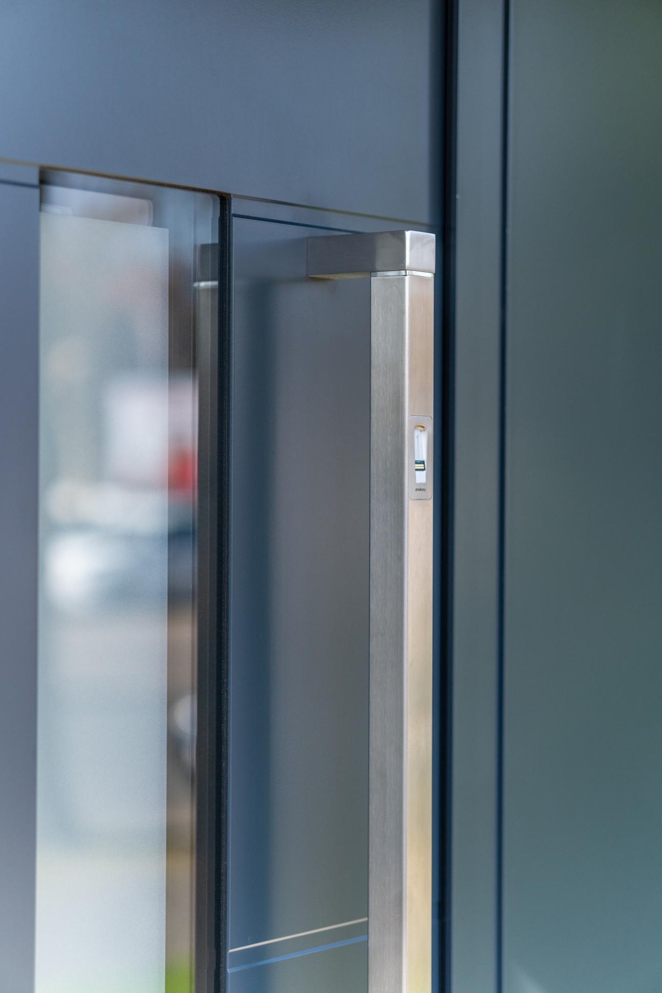 Die Haustür ist mit moderner Komforttechnik ausgestattet: Ein im Griff integrierter Fingerscan ermöglicht den schlüssellosen Zugang, während die Automatikverriegelung die Tür ohne ein menschliches Zutun verriegelt. Sowohl Fenster als auch Haustür bieten geprüfte und zertifizierte PaXsecura Einbruchhemmung in der Widerstandsklasse RC2. Dazu gehören abschließbare Fenstergriffe, angriffhemmendes Sicherheits-Isolierglas sowie ein hochwertiger Sicherheitsbeschlag, der das Aufhebeln wirksam erschwert.