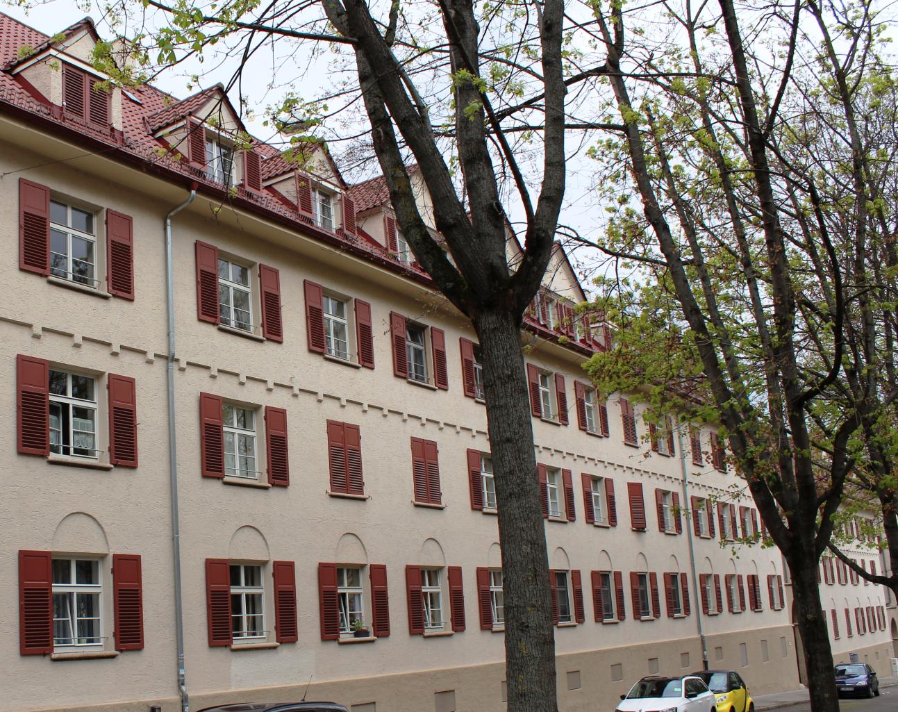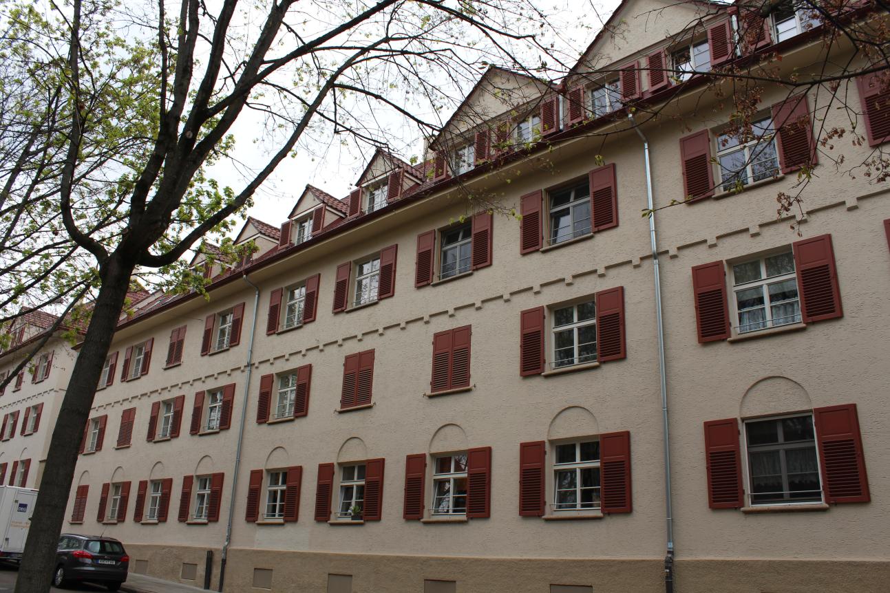 PaXretro58 Schallschutzfenster für unter Denkmalschutz stehende Häuser in der Rotenbergsiedlung. Die Gebäude wurden um 1919/1920 vom Architekten Eugen Steigleder entworfen und bildeten den ersten Siedlungsneubau im Osten von Stuttgart. Es ist eine zweckmäßig reduzierte Bauweise wobei gerade die Fenster eine wichtige die Fassadenansicht gestaltende Funktion haben. Praktisch alle Fenster wurden in den letzten 40 Jahren gegen unpassende, ungegliederte Fenster getauscht. Glücklicherweise konnte ein PaX-Mitarbeiter im Keller noch ein altes Belegfenster aus der Bauzeit auffinden. An diesem Fenster konnten sich Denkmalpflege und die Techniker von PaX dann orientieren um eine möglichst genaue Rekonstruktion zu erreichen. Nach umfangreichen Sanierungsmaßnahmen besitzen die Gebäude heute wieder ihren ursprünglichen Charme.